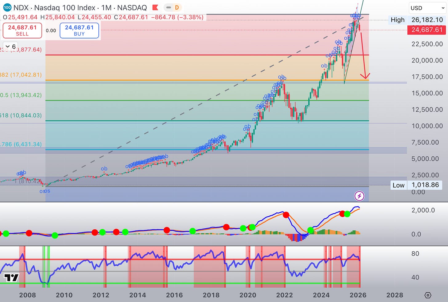 What makes the current setup particularly dangerous is that multiple, independent technical signals are now converging — across timeframes, asset classes, and market structures.